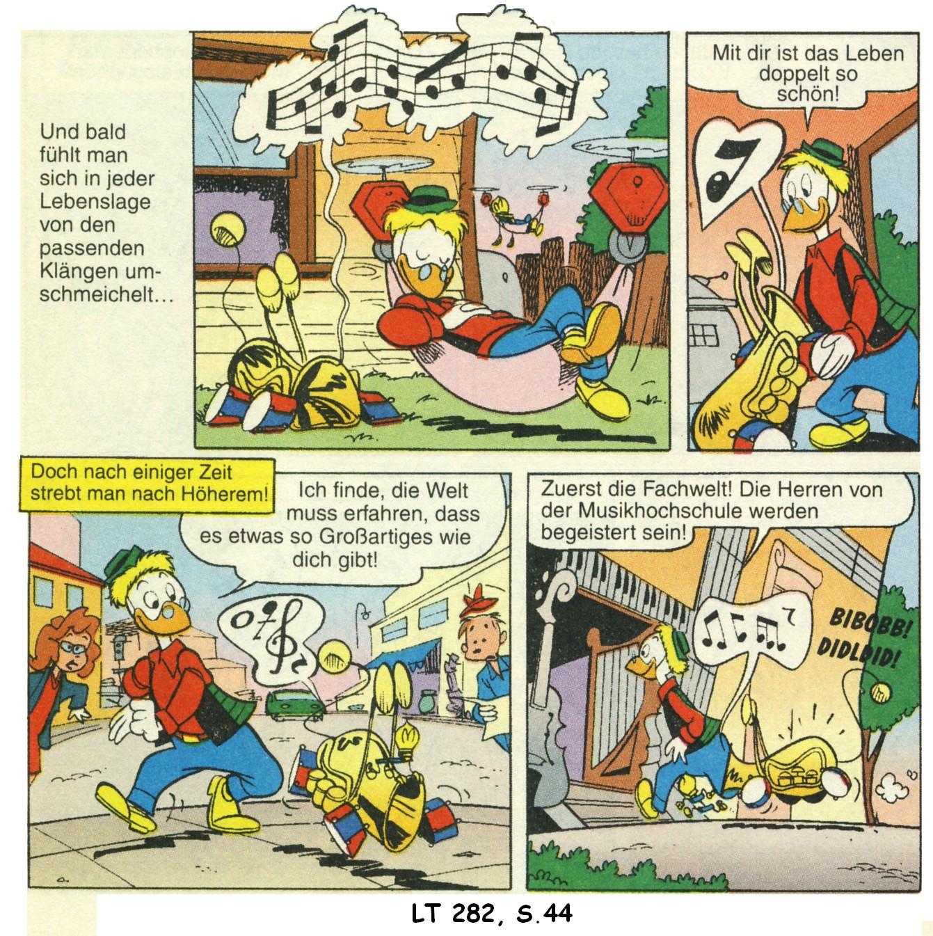 Hallo - erinnert sich jemand in welchem LTB die Erfindung drin vorkommt, die automatisch erkennt, welchen Musikgeschmack ihr Nutzer hat und ihm die entsprechende Musik vorspielt? Ich glaube Donald tanzt dazu im Park, bevor er weitergerissen wird. Die spotifies und amazons sind lediglich eine Weiterentwicklung davon wuerde mich ueber einen Hinweis freuen. Danke K