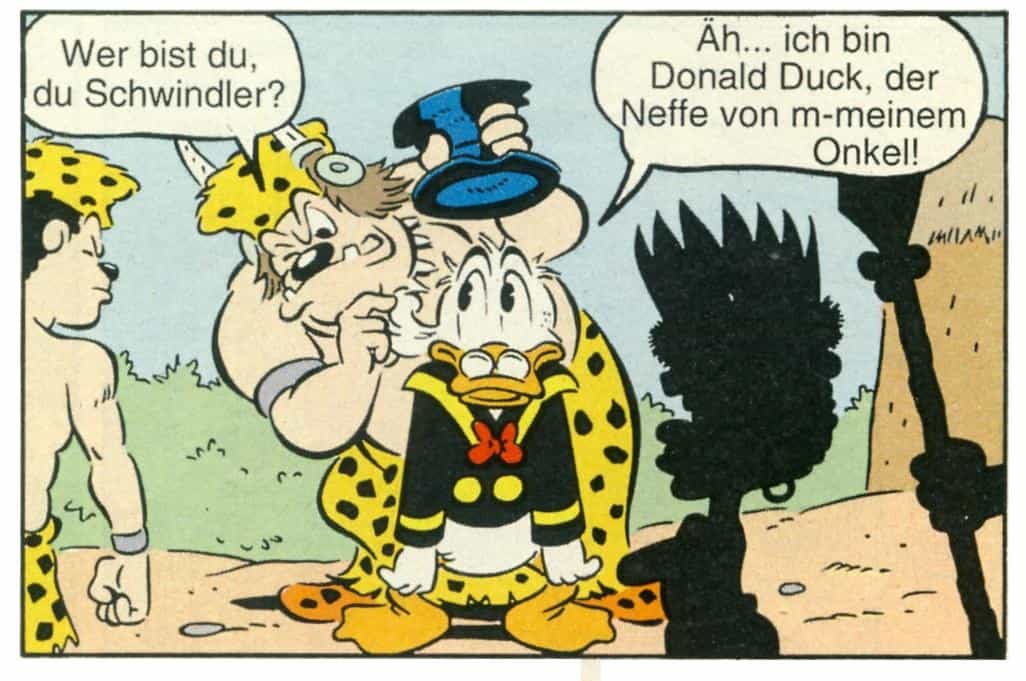 Auf Twitter wird mit Hilferuf an uns gesucht: ein Panel, auf dem Donald Duck sich empört an eine andere Figur wendet, mit den Worten "Na hören Sie mal, ich bin der Neffe meines Onkels". Phantom, ich zähle auf Dich!